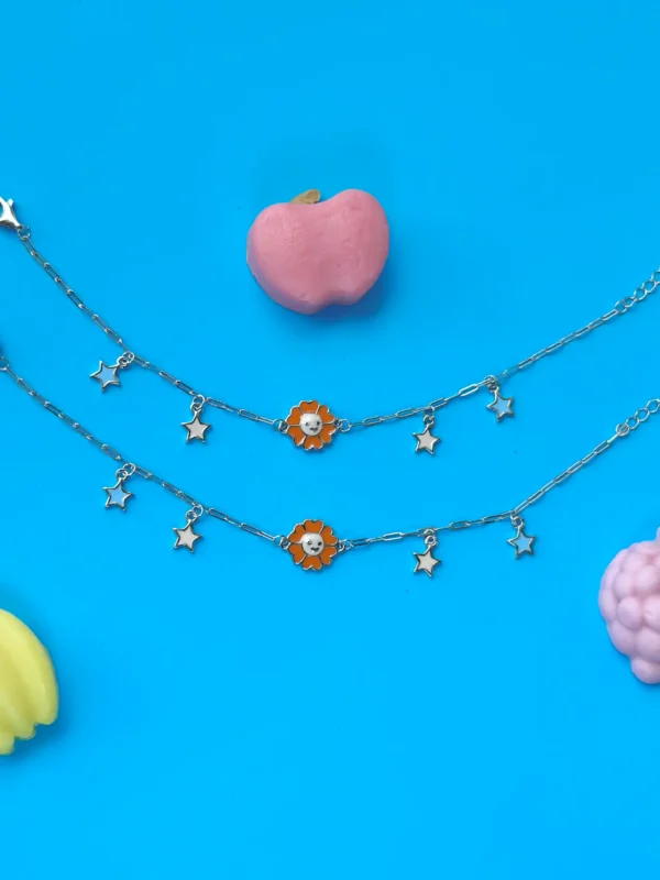 Gold Polish 92.5 Silver Star Charm Bracelet