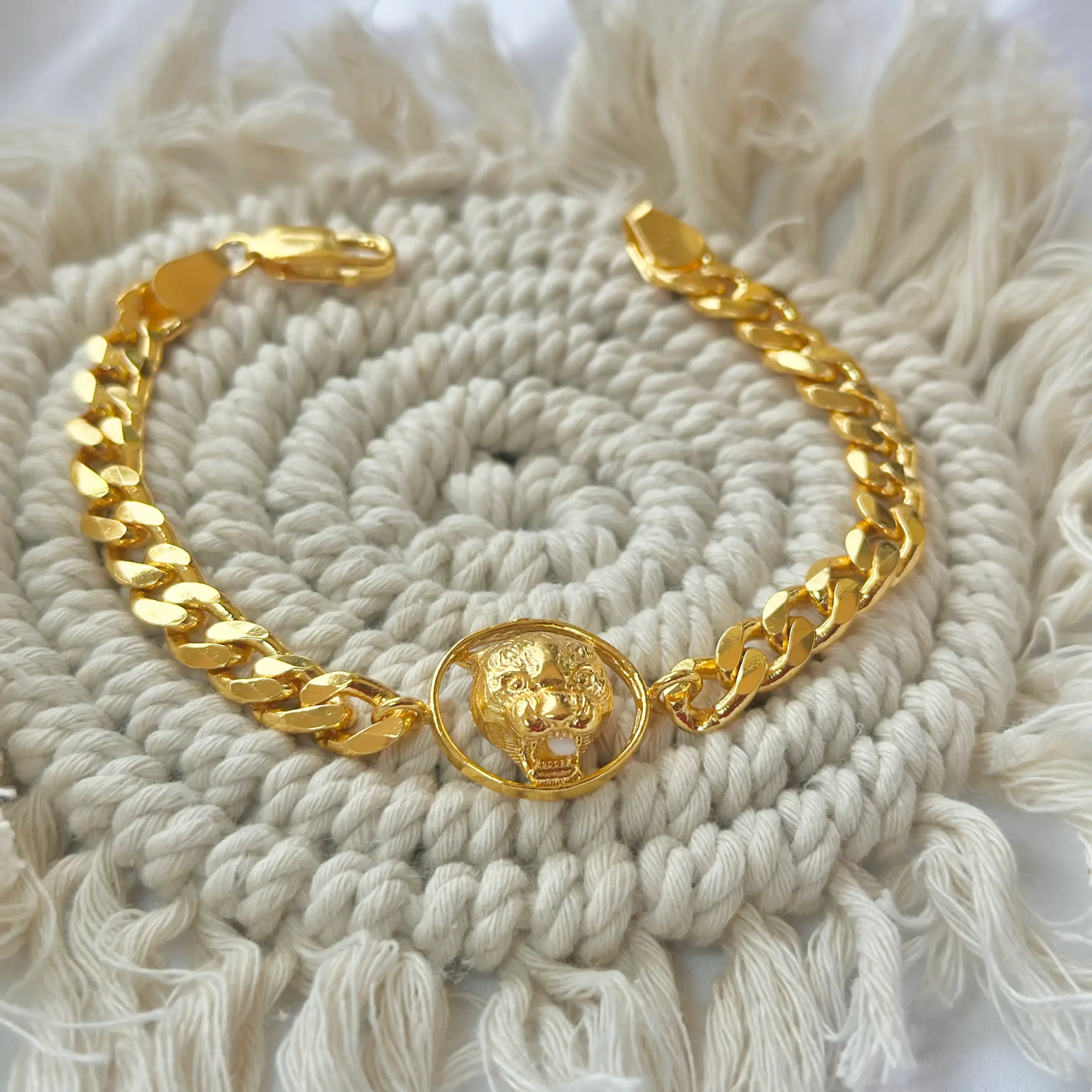 18K Gold Polish Jaguar Face Mens Bracelet